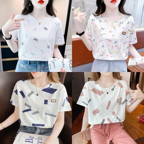 루즈핏 캐릭터 레터링 여자 여름 면 반팔티셔츠