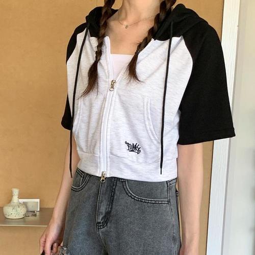 [다잇템]여자 콘트라스트 SS 후디 캐쥬얼 집업 (16674984A)