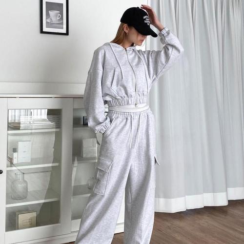 여성 니트 후드 집업 팬츠 세트 데일리상하 겨울 따뜻한 홈웨어 운동복 공용 편한 스웨트트레이닝 캐주얼