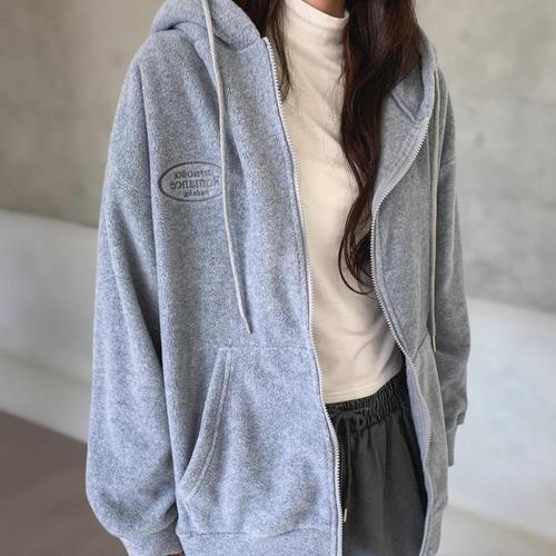 [옷자락]여성 캐주얼 자수 기모 후드 오버사이즈 집업 점퍼