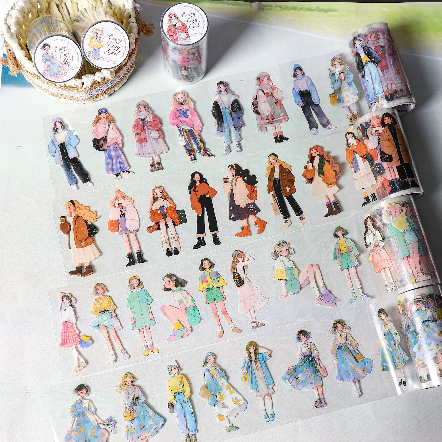 귀여운 만화 시리즈 필름 컷 테이프 문구 장식 스티커, 인스 귀여운 만화 동물 구카 장식 손 계정, 6 가지 유형
