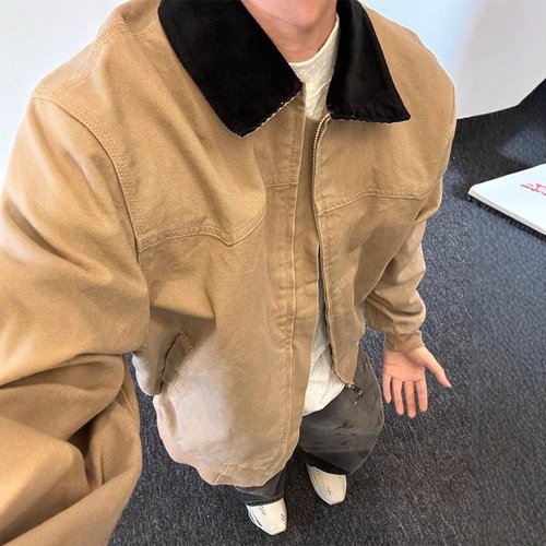 랩블루(LabBlue) 남성 아메리칸 빈티지 두꺼운 캔버스 코듀로이 카라 집업재킷 루즈핏 포켓자켓 2가지색 가을용