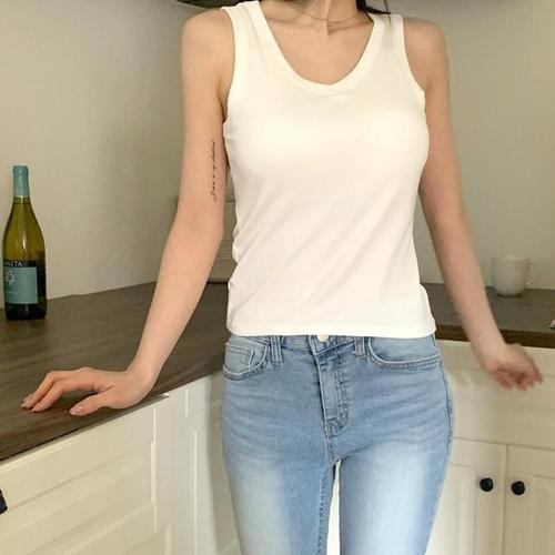[다잇템]여자 내의 골지 SS 브라캡 미니멀리즘 V넥 나시 (14123142A)