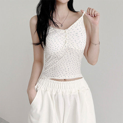 코키코키 / 데일리템/여리핏 가든 플라워 잔꽃 버튼 캡내장 쫀쫀 나시티셔츠