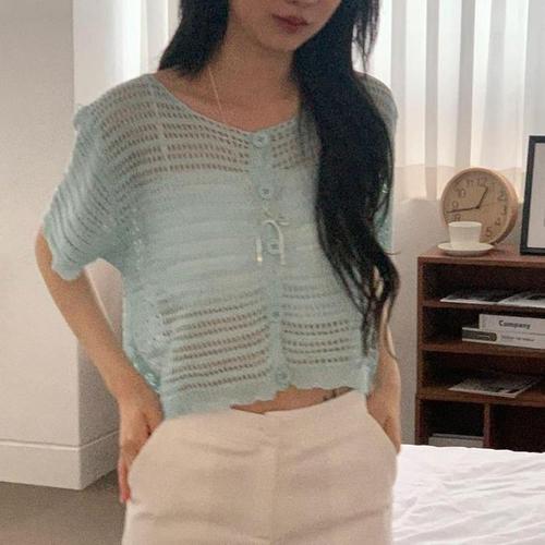 [다잇템]여자 크롭탑 비침 브라캡나시 탱크 카디건 세트 (15721729A)
