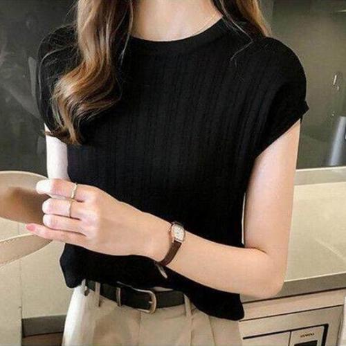 [셀러허브_여성트랜드패션]ONM 라운드넥 베이직 쿨링 니트 캡소매 나시 티셔츠