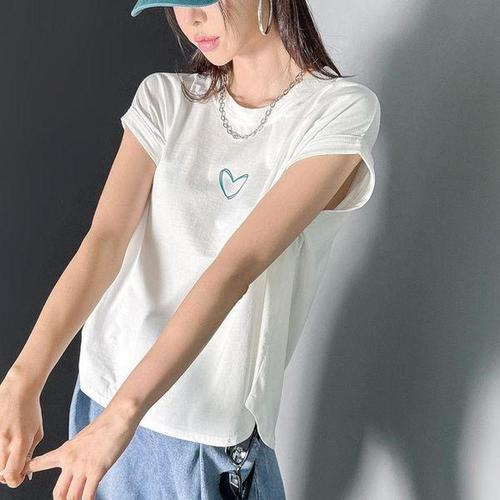 [옷자락]여자 캡소매 하트티셔츠 라운드넥 박시핏 루즈 나시