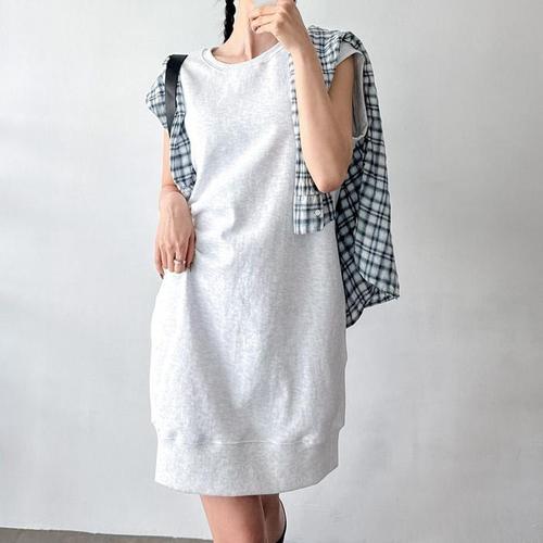 여자 캡소매 오버핏 포켓 무채색 미니원피스