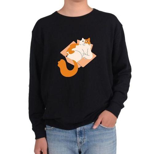 [에이치플러스몰]흰색과 야옹이 CAT 집사 고양이 털 검은색 맨투맨 반