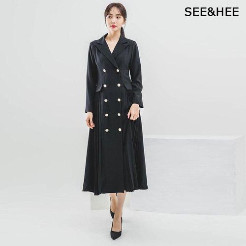 [씨앤희]플리츠 더블 자켓 펄버튼 원피스