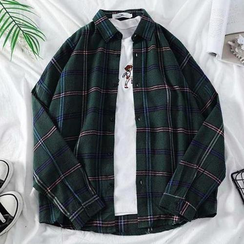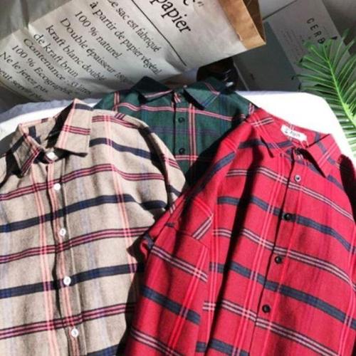 [엠클로]남자 오버핏 빈티지 체크 셔츠 남성 캐주얼 커플 남방