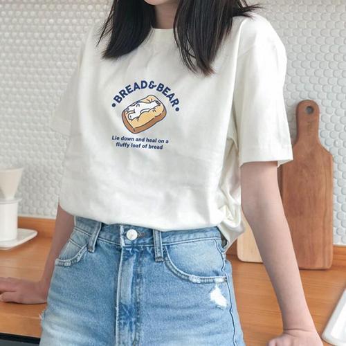 [험블][험블] 스트릿 캐릭터 프린팅 루즈핏 커플여름반팔티 (6448625A)