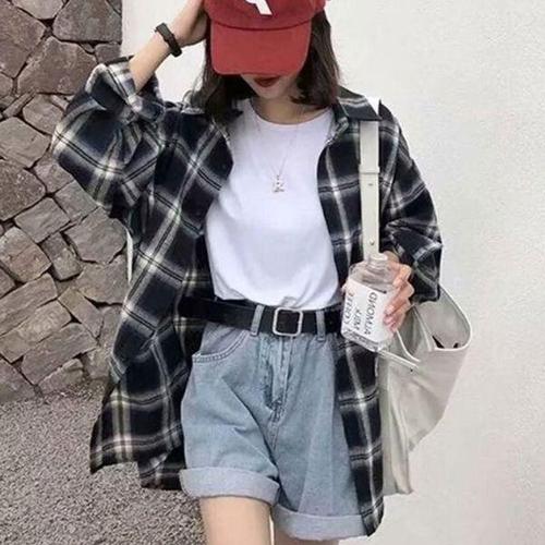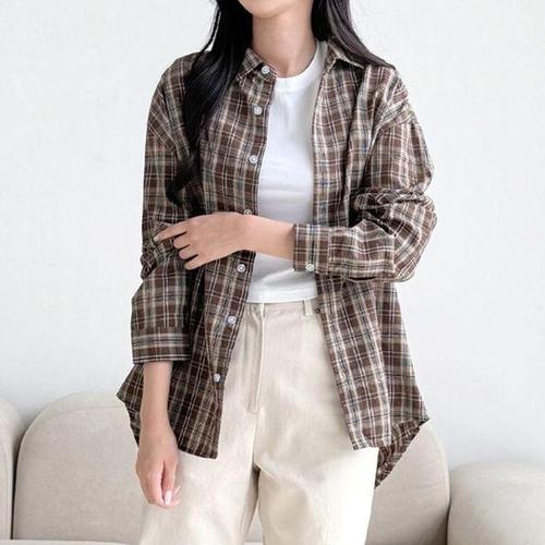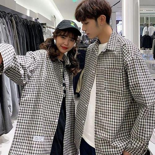 [에이치플러스몰]남녀 트렌디 체크 셔츠 1P 커플 남방 루즈핏 패션