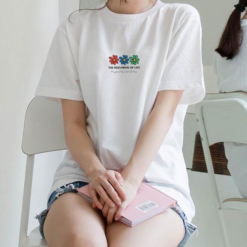 [험블][험블] 비기닝플라워 레터링 라운드넥 커플반팔티셔츠 (7322591A)
