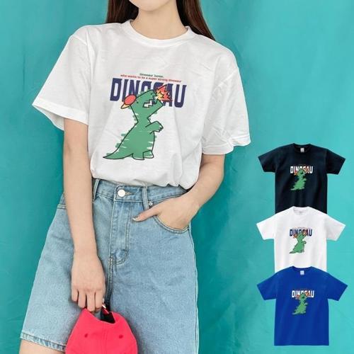 [험블][험블] 다이노 캐릭터 커플티 라운드 여름 반팔티셔츠 (8721762A)