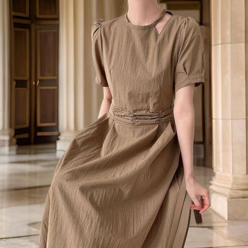 [다잇템][다잇템] 여자 라운드 컷오프 나일론 반소매 잔주름 봄여름 롱원피스_20735570_588872