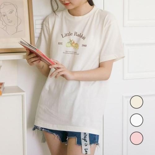 [험블][험블] 루즈핏 리틀레빗 레트로 캐릭터티 라운드넥반팔티 (6909541A)