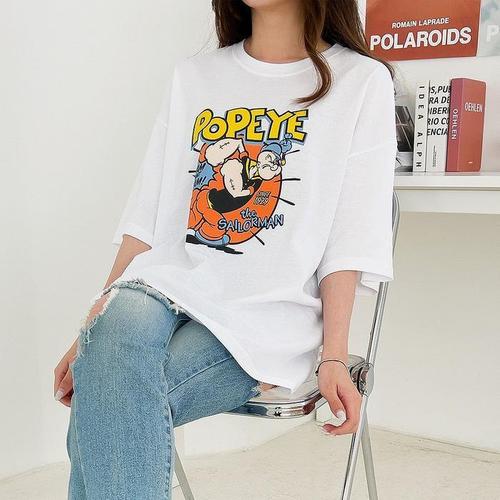 [셀러허브_여성트랜드패션]ONM 루즈핏 캐릭터 프린팅 반팔티 캐주얼 데일리 꾸안