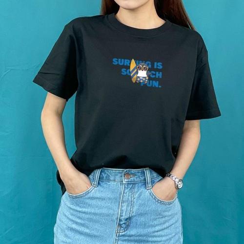 [험블][험블] 서핑펭귄 캐릭터 프린팅 여름 오버핏 라운드 반팔티 (8052311A)