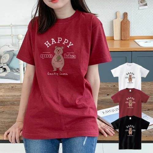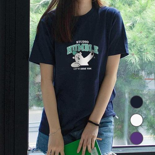[험블][험블] 곰돌이 여성 캐릭터 루즈핏 여름 반팔 티셔츠 (8110497A)