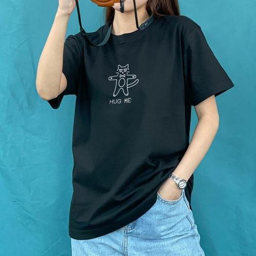 [험블][험블] 허그미 야옹이 프린팅 캐릭터 라운드 반팔티셔츠 (8103042A)