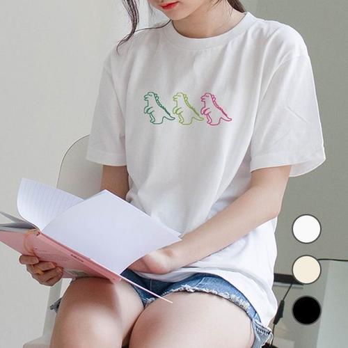 [험블][험블] 공룡 캐릭터 프린팅 루즈핏 여름반팔티셔츠 (7032040A)