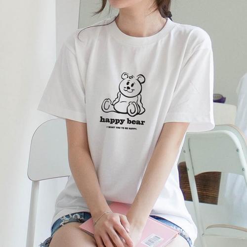 [험블][험블] 해피베어 캐릭터 오버핏 라운드넥 여성여름반팔티 (7353496A)