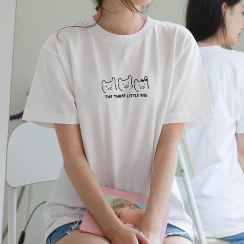 여자 여름 반팔티 6종 캐릭터 반팔 티셔츠 라운드넥 (KYR-WF5F6D0)