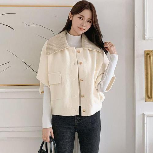 [다잇템_패션]여자 반소매 탈부착카라 금장버튼 망토 가디건