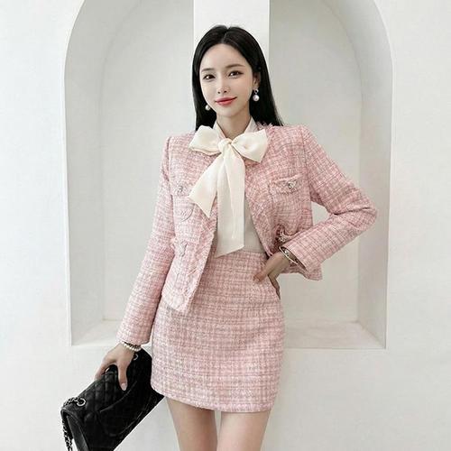 여성 봄 가을 4컬러 하객룩 페미닌 금장 트위드자켓 rZw6+8oDT