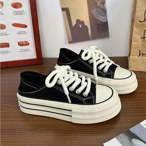 [셀러허브_여성트랜드패션]여자 플랫폼 통굽 스니커즈 운동화 캔버스 뮬 키높이