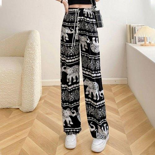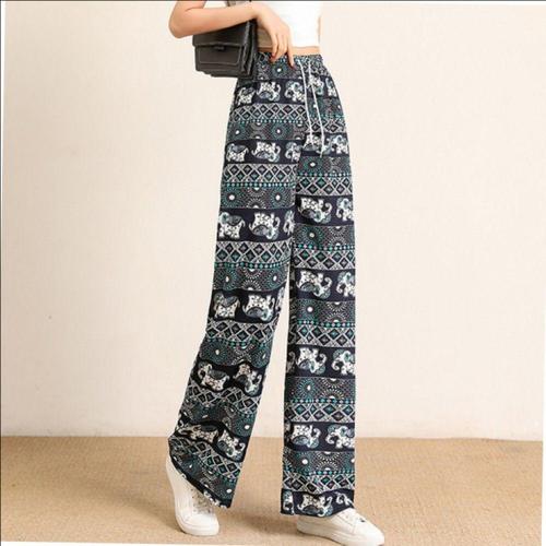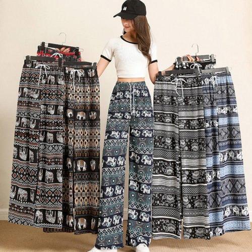 [오너클랜]인기상품 여성용 쿨 밴딩 와이드 팬츠 태국 코끼리 프린트 통바지 [WFLKZPU_260304]