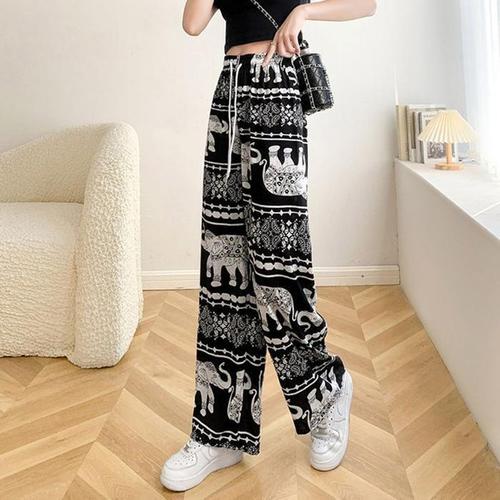 [오너클랜]인기상품 여성 여름 밴딩 통바지 코끼리 무늬 쿨링 팬츠 여행 휴양지 바지 [WFLL9FB_260304]