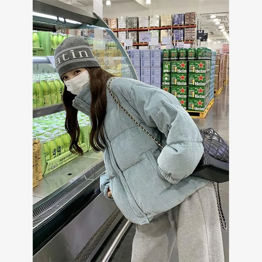 한국 스타일 코듀로이 셔츠 재킷 여성용 봄 가을 루즈핏 중간 길이 여성용 셔츠 가디건 탑 따뜻한 긴팔 폴로 칼라