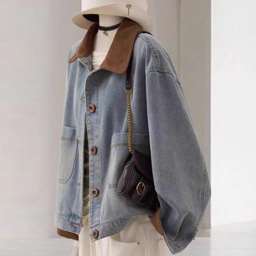 여성 3컬러 박스핏 배색 코듀로이 카라 청 데님 자켓 IS-DN44