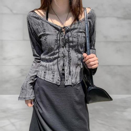 [다잇템]여성 카디건 코디 손상 슬리브리스 세트