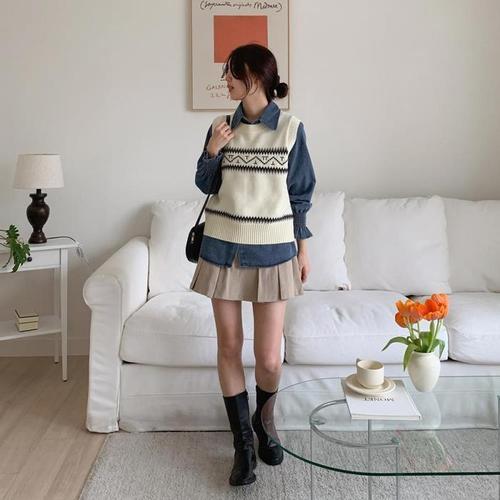 [다잇템][다잇템] 여성 셔츠와 스웨터 셋업 코디 세트_24596799_588872