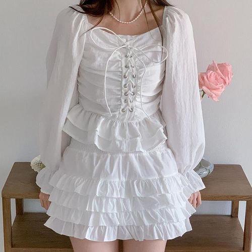 [셀러허브_여성트랜드패션]여자 코르셋 귀여운 잔주름 프릴 블라우스