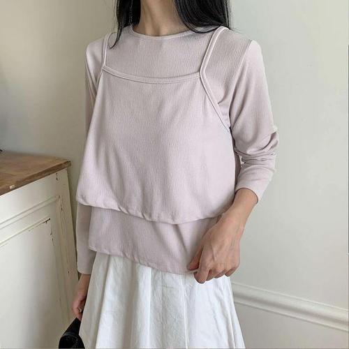 [다잇템]여성 롱슬리브 U넥 블라우스 코르셋 세트