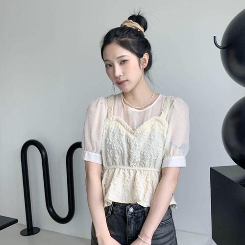 [다잇템]여성 잔주름 벌룬 코르셋 반소매 코디 블라우스 (32645115A)