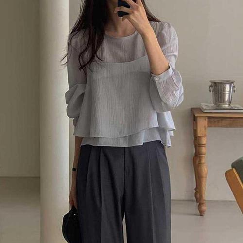 [다잇템][다잇템] 여성 U넥 미니멀리즘 코르셋 롱슬리브 블라우스 세트_23227116_588872