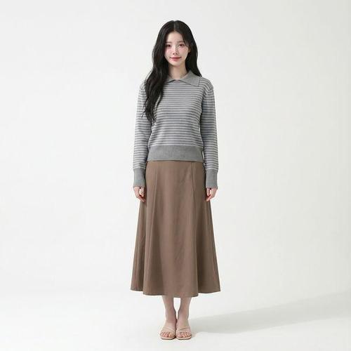 [다잇템]여자 캐쥬얼 일상룩 줄무늬 코지 긴치마 치마