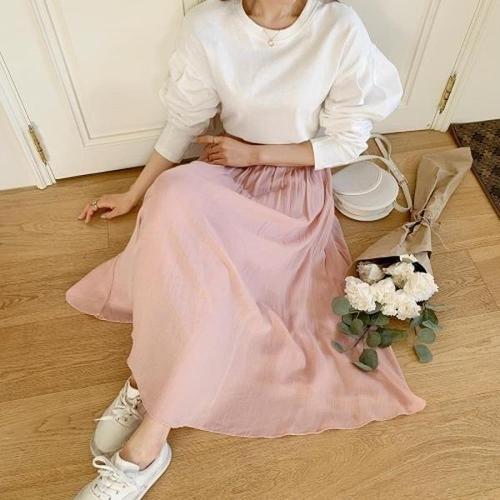 [신상오픈런]여성 코튼 플레어 롱스커트 데일리 아웃스티치 밴딩 스타일