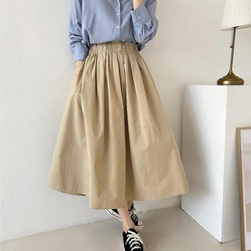 [신상오픈런]|KHK27C|본루이 밴딩 면 여성 심플 긴 치마 플레어_18163995_597559