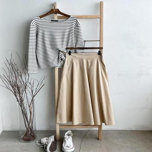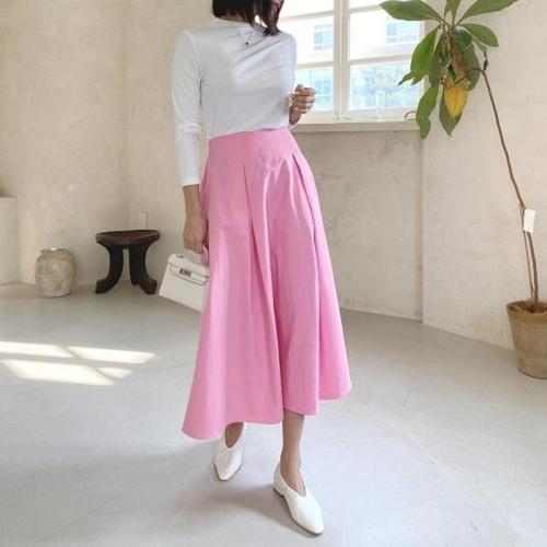 코튼핀턱플레어롱스커트 스커트 밴딩 uts3+2bKo