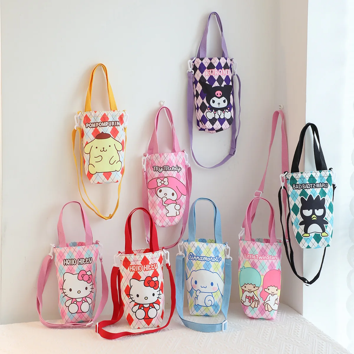 산리오 헬로 키티 시나모롤 물병 가방 멜로디 귀여운 피규어 쿠로미 포차코 캔버스 머그 가방 크로스바디 토트 생일 선물