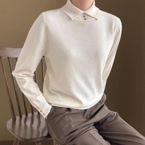 [미라클세븐]여성 직장인 룩 기본 버튼 카라 니트 무지 스타일
