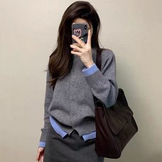 YANGTA 레이어드 배색 가디건 투톤 라운드 가디건