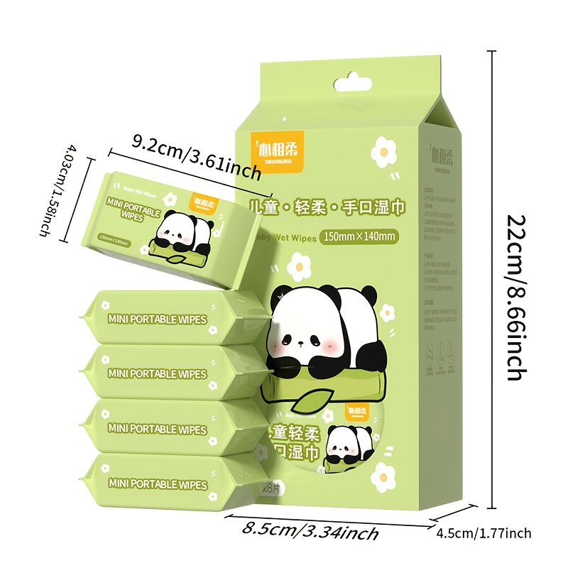 TEMU 64개 미니 휴대용 물티슈, 무알콜 일회용 물티슈, 여행용, 외출용, 남녀 공용, 애완동물 안전, 완벽한 선물용, 귀여운 판다 패턴