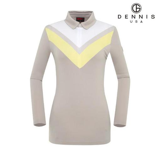 [데니스골프][DENNIS] 여성)V배색 반짚업 티셔츠_NAMSLTS053